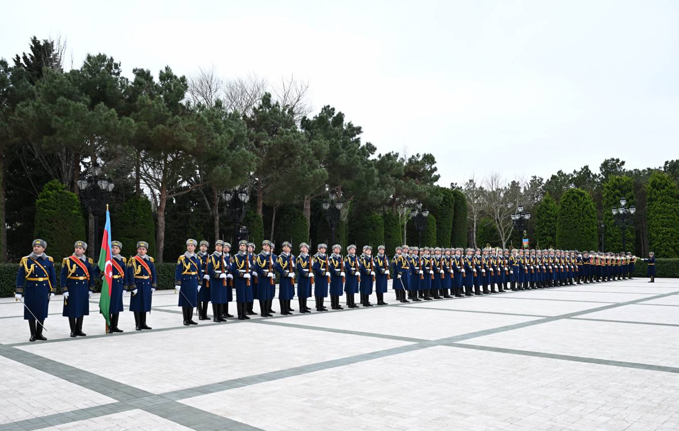 Fəxri qarovul dəstəsi hərbi marşın sədaları altında Azərbaycan Prezidenti İlham Əliyevin və Efiopiyanın Baş naziri Abiy Əhməd Əlinin qarşısından keçdi.