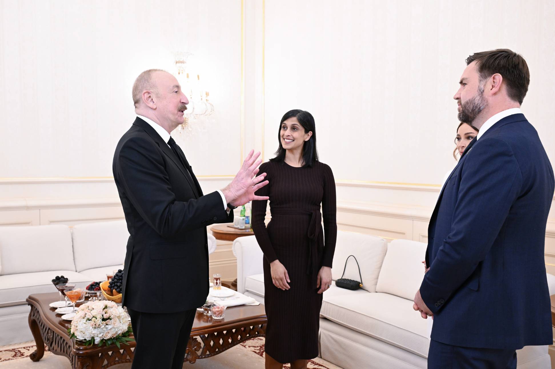 Bağlantılara gəldikdə, artıq qeyd etdiyim kimi, TRIPP layihəsi regionda sülhün inkişafına və əməkdaşlığa növbəti töhfə olacaq. Biz müdafiə məhsullarının satışı sahəsində yeni səhifə açırıq və bu, həmçinin perspektivlidir. Əlbəttə ki, süni intellekt mərkəzlərinin yaradılması bu gün ikitərəfli gündəliyimizin bir hissəsidir və Amerikanın aparıcı şirkətləri ilə işbirliyi quraraq artıq ilkin nəticələrimiz var. Başqa sözlə, Vitse-prezident Vensin bugünkü səfəri imzalanmış Strateji Xartiya, danışıqların mahiyyəti, dostumuz və qonağımızın qəbulu baxımından tarixidir. Cənab Vitse-prezident, xoş gəlmisiniz.